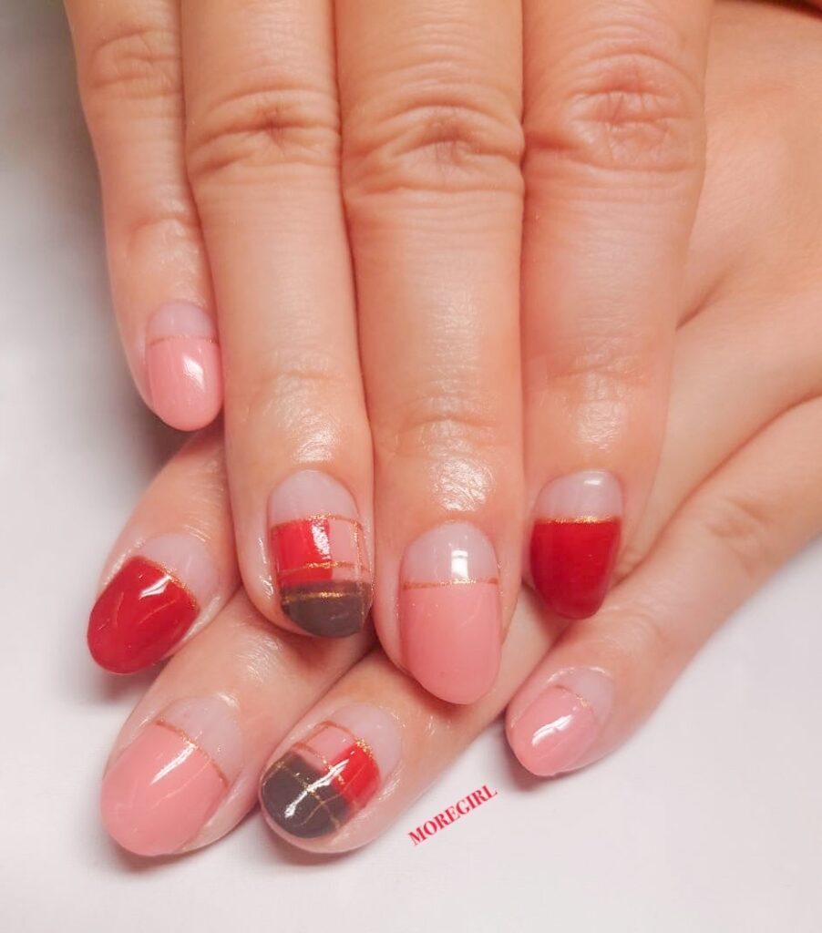 チェック柄ネイル 2023/02/15 Information Staff Blog 暖かみのあるカラーのフレンチに、ゴールドのラメで可愛いらしい雰囲気のチェック柄に。 差し色の茶色でガーリー過ぎない大人可愛さを!
