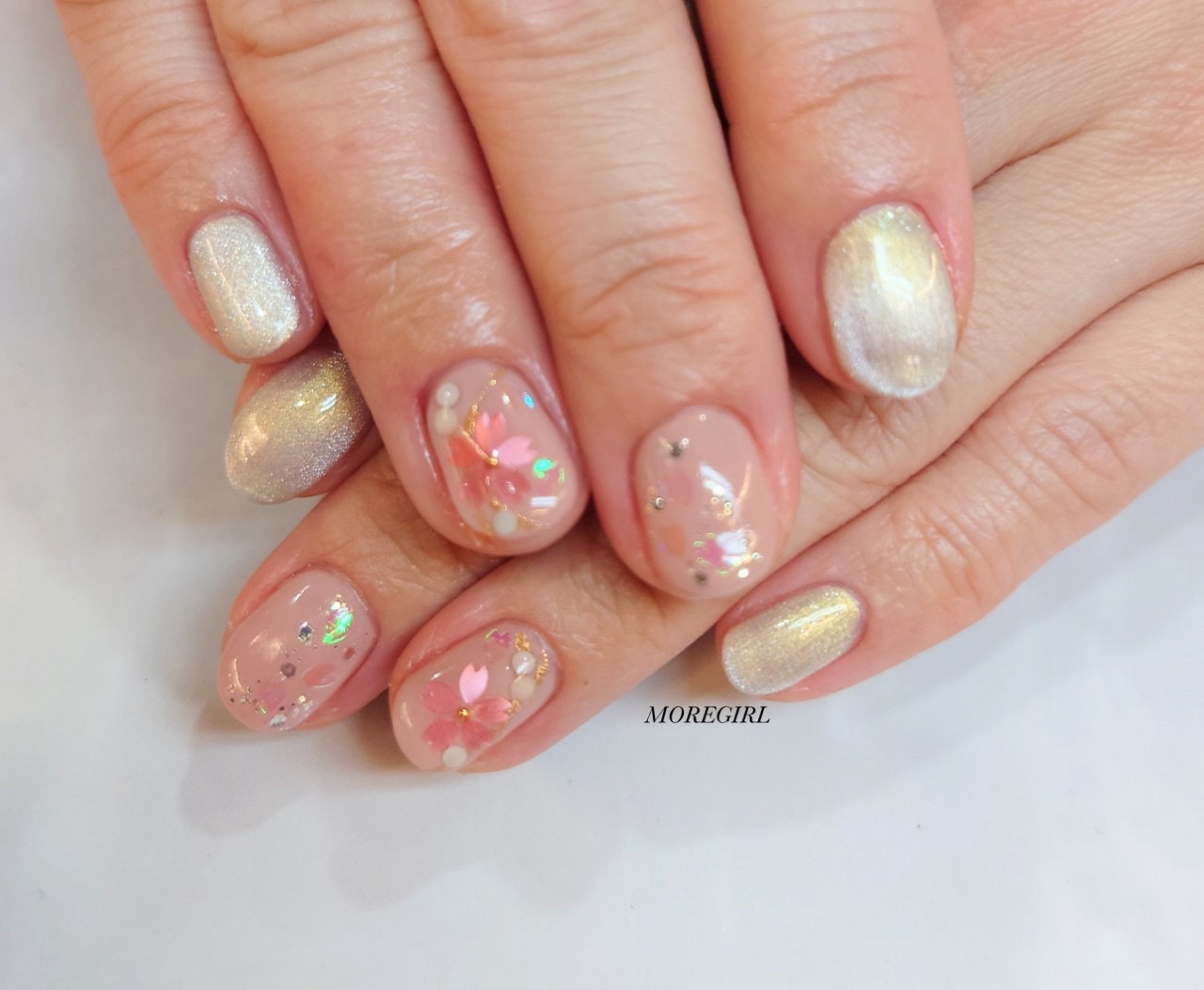 桜のアートと上品なマグネットネイルの組み合わせで季節感がありつつ大人可愛く!