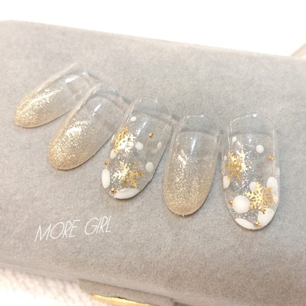2020/12/03おはようございます。 モアガール表参道です。 本日は、キラキラな斜めフレンチネイルをご紹介いたします(^^) ホワイトラメとピンクホログラムをベースに 雪の結晶、ストーンをちらした可愛らしいデザイン! アートはシンプルめ …